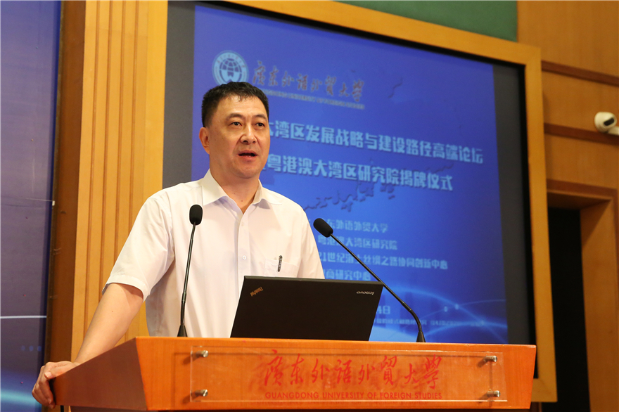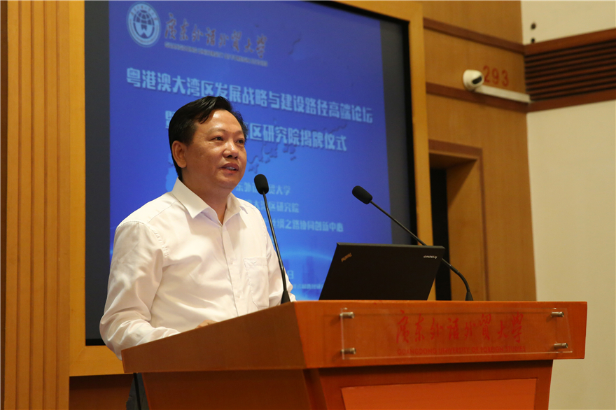 隋广军在致辞中指出,粤港澳大湾区已经上升为国家战略。这一战略将在未来相当长一段时期指导和引领粤港澳深度融合,推动落实“一带一路”和亚太自贸区的战略构想,为中国改革开放开拓新局面。我校成立粤港澳大湾区研究院,希望整合、盘活我校粤港澳研究力量,建成跨学科、跨专业、跨区域的综合性研究基地和开放性平台,为推进粤港澳大湾区建设提供高水平的智力支持。