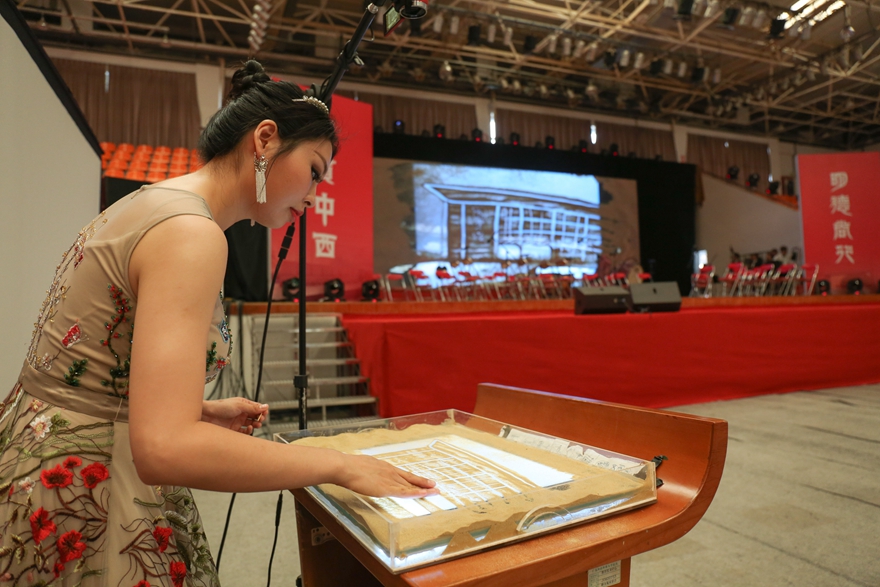 我校校友麦燕的沙画创作《广外流沙》缓缓拉开晚会序幕。细沙从她指尖滑落,勾勒出了一个广外学子从收到录取通知书,踏入校门,穿梭在教室与图书馆之间,到身着学术服从我校毕业的时光画卷。麦燕的沙画表演,让刚进入我校的2017级新生开始期待他们大学生活下一幅精彩的画面。