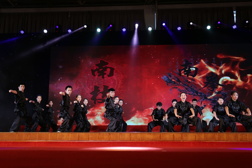 我校广袤园武术协会给师生带来各类武术表演《舞动乾坤》,全面展现武术之精华。太极表演刚柔并济,舞刀表演刚劲有力,舞棍表演招式变幻多端,长拳快慢相间、节奏分明,南拳表演刚而不脆、柔而不软。而话剧《No作No贷》则让在场师生都捧腹大笑,我校话剧队队员用逗趣的表演、贴近同学日常生活的网络段子生动演绎话剧,让新生们在欢快的氛围中警惕校园贷款诈骗。