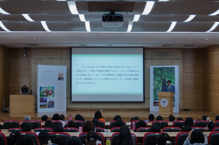 吉乡研滋代表池田大作宣读谢词,讲述了池田大作对摄影艺术的看法“我只有以无为与坦诚的一念与自然展开对话”,希望此次展览能够推进双方的文化交流。他代表池田大作,将其最新的、尚未公开发表的摄影作品赠与我校。此前池田的摄影展已在世界各地展出,他的作品超越民族与国界,以文化为桥梁把世界联结了起来。