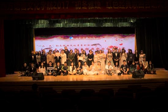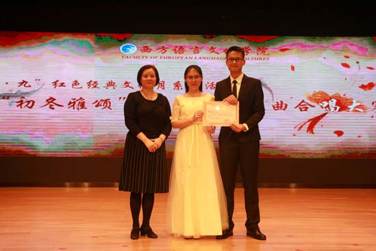 本网讯12月1日晚,西方语言文化学院红色经典系列活动之“一二•九”红色经典歌曲合唱大赛于第六教学楼报告厅举行。本次合唱比赛以“初冬雅颂”为主题,通过有趣的合唱形式追忆红色岁月,展现对革命年代思考,用歌声缅怀先烈,用音符书写敬意。