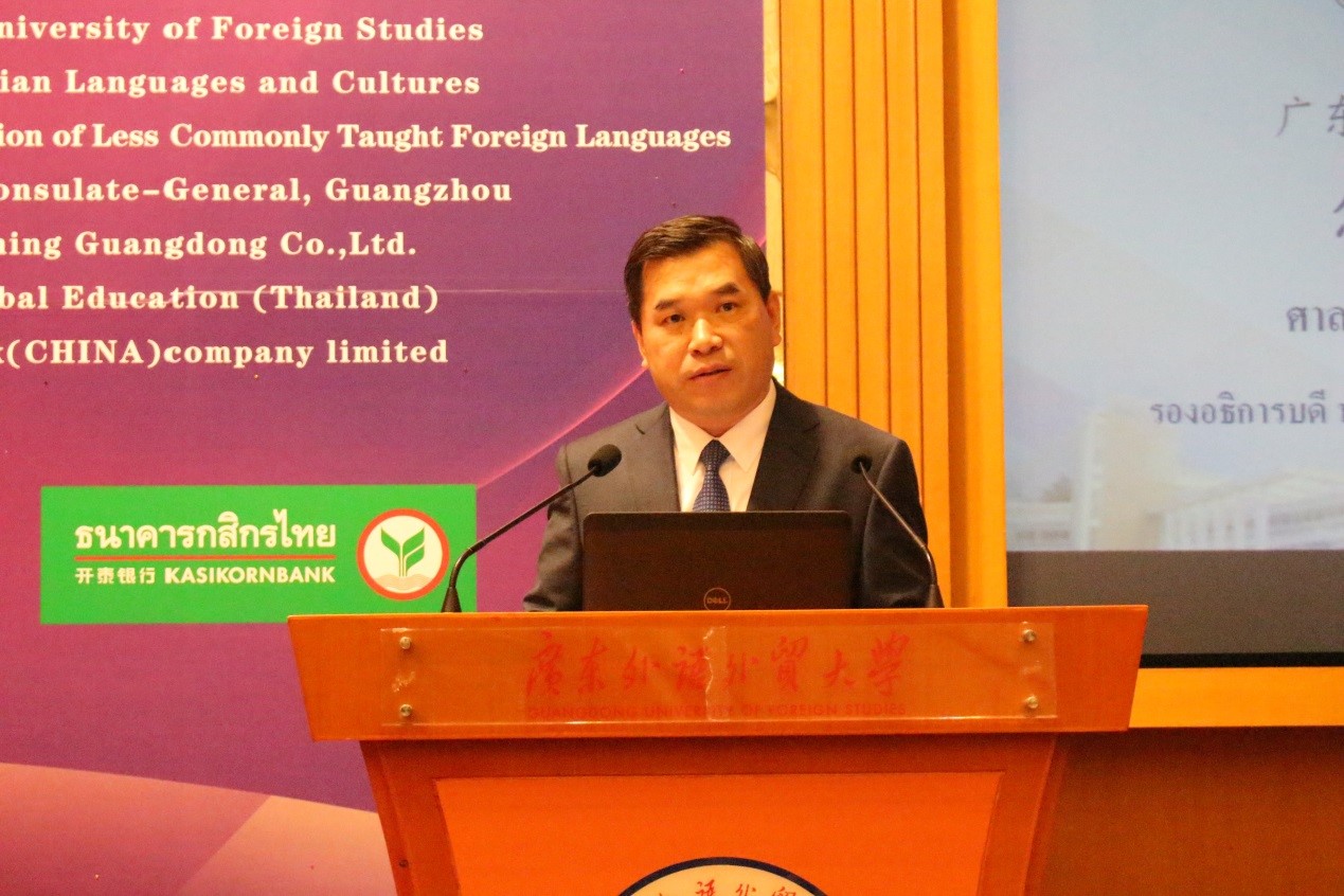 副校长焦方太在致辞中表示,一带一路”建设为中国和一带一路国家的经济、金融、基础设施等方面的合作提供的巨大的机遇,也为中国非通用语种人才培养和学科的发展提供了史无前例的动力,其中就包括泰语人才。他对于此次研讨会的召开充满信心,认为其专业视角与前瞻思维一定会为一带一路背景下泰语教学与改革创新提供有益见解,必将进一步加强亚太地区各高校泰语专业之间的合作与交流。