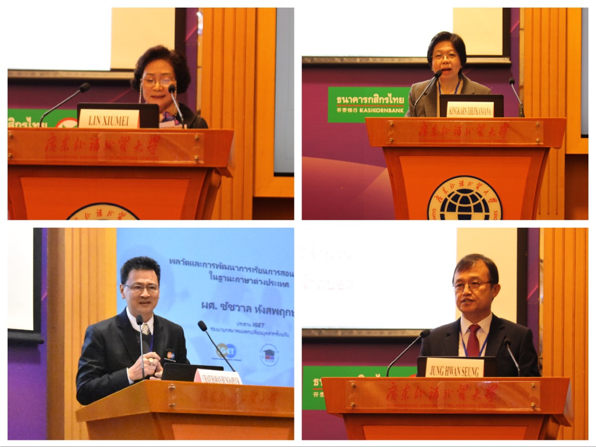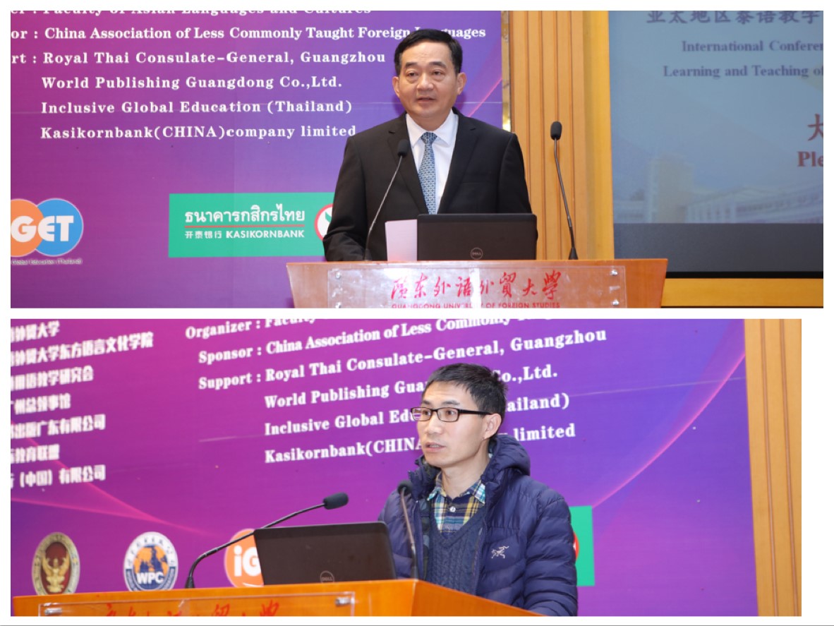 在主旨发言环节,原中国非通用语教学研究会泰语分会会长、我校泰语系资深教授林秀梅,泰国朱拉隆功大学文学院院长KingkarnThepkanjana,韩国外国语大学翻译学院院长、韩国泰学研究会会长Jung Hwan-Seung,以及原曼谷大学副校长、泰中国际教育联盟主席ChatchawanHungsapuck分别就“中国泰语教学发展的历史和趋势”、“培养非母语习得者的泰语语用能力”、“韩国泰语教学发展历程和现状”以及“泰国对外泰语教学的沿革”等主题做了主旨发言。