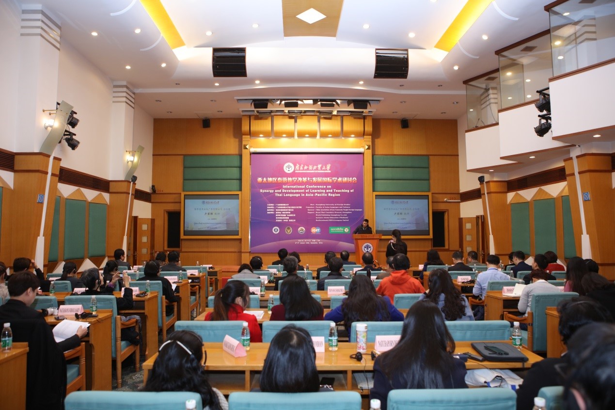 本网讯 1月8至1月9日,亚太地区泰语教学改革与发展国际学术研讨会在我校北校区国际会议厅召开。此次研讨会是我国泰语界首次举办的泰语教学国际学术会议,旨在促进我国与泰国、韩国各高校泰语专业间的交流与合作,扩大我校泰语专业在全国、泰国乃至亚太地区的知名度及影响力,提高泰语教学水平和人才培养质量。近70名来自中国、泰国和韩国的28所高校和机构的专家学者参加了此次研讨会,围绕泰语教学大纲制定、泰语水平测试探讨、泰语教学的方法和技巧研究、泰语人才培养的经验及措施、泰语语言研究、泰国文化研究和泰国文学研究等议题进行广泛深入的探讨,并分享了泰语教学新形势、新思路的思考和探索。