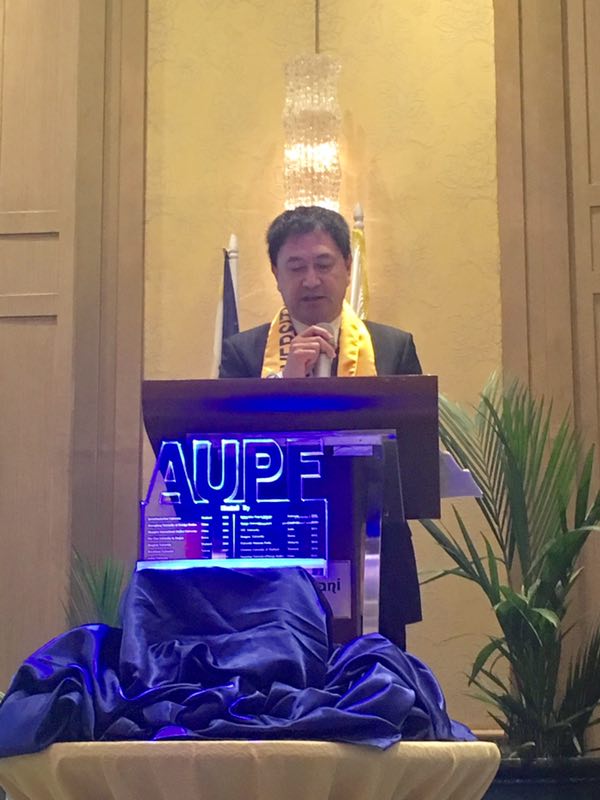在菲律宾马尼拉访问期间,隋广军出席了在菲律宾师范大学承办的第十六届亚洲大学校长论坛(AUPF),并在全体大会作了《共享一带一路机遇,推动亚洲高校合作》主题演讲,现场对此反响热烈。此届AUPF,隋广军代表我校与十所亚洲大学签署了合作备忘录。