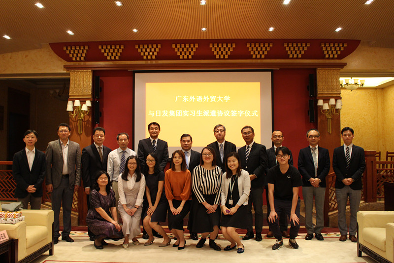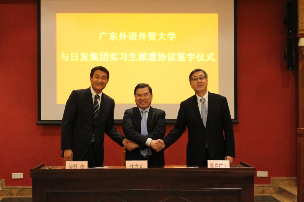 本网讯 11月14日下午,我校与日发投资有限公司、广州日帆商贸有限公司签订实习基地协议仪式在北校区举行。我校副校长焦方太与日本发条株式会社副总经理嘉户广之、日本发条株式会社经营企画部主管神泽伸一、日发投资有限公司总经理吉田晓、广州日帆商贸有限公司总经理浅野信等出席签约仪式。