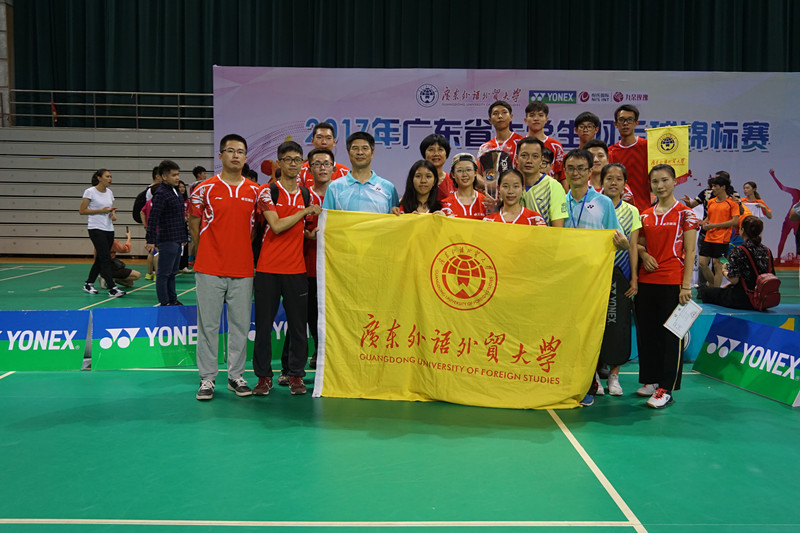 本网讯11月9日至12日,2017年广东省大学生羽毛球锦标赛在我校南校区体育馆进行。我校代表队主场作战取得获历史性突破,获得女单冠军、男单第三、女双第四,甲组团体第一的优异成绩。12日下午,广东省教育厅体卫艺处副处长侯波、广东省学生体育艺术联合会秘书长林子平、国际裁判兼本次比赛裁判长李森,我校体育部主任林少娜、体育部党总支书记李旭武的出席颁奖仪式。