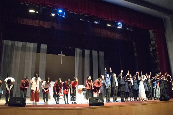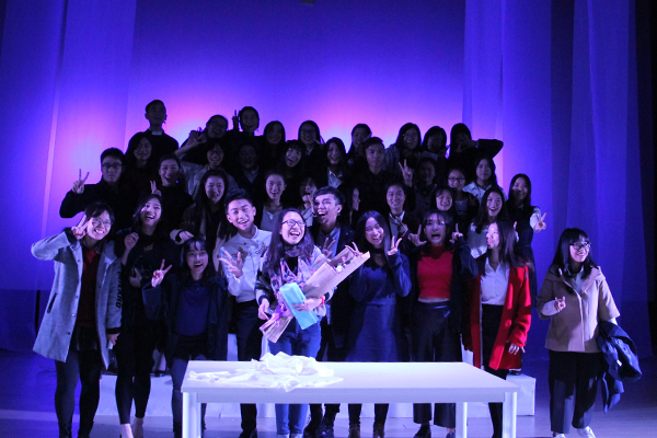 本网讯 12月17日晚,英文学院戏剧社年度大型戏剧展演在云山会堂开幕。今年的剧作《罗密欧与朱丽叶》融入诸多现代元素,跳出传统框架,以新颖独特的方式诠释了莎翁的这部经典之作。众多我校校友汇聚云山会堂,欣赏了这场声色俱佳的戏剧盛宴。广州大剧院经理刘子君出席了本次戏剧展演。