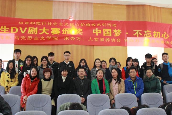 本网讯12月29日下午,第四届人生DV剧比赛颁奖仪式在南校区八角楼举行。大赛以“中国梦·不忘初心”为主题,全方面多样化多维度的角度体现了大学生积极向上的精神风貌,为广大学生促进实现中华民族伟大复兴中国梦树立了坚定的信念。本次大赛是我校培育与践行社会主义核心价值观系列活动之一,人生DV剧大赛是系列活动的核心项目。
