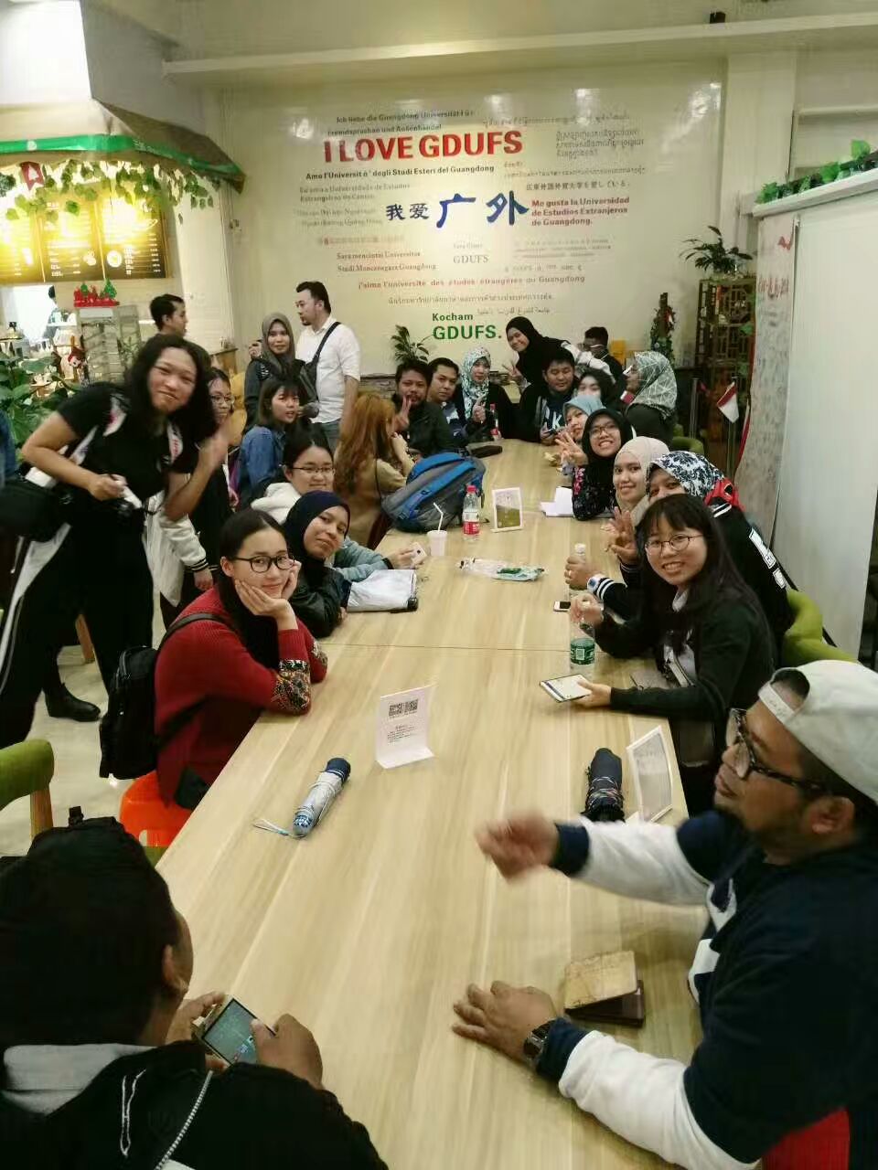 代表团在马来语师生的陪同下参观了校园,第一站为图书馆校史室,马来语系学生担任讲解员,用流利的马来语向来宾讲述了我校校史。随后,代表团来到了广外文化创意馆,欣赏广外独特的文化产品。两校师生在云栈咖啡厅进行了深入、广泛的交流并表演了文艺节目,双方还交换了纪念品。