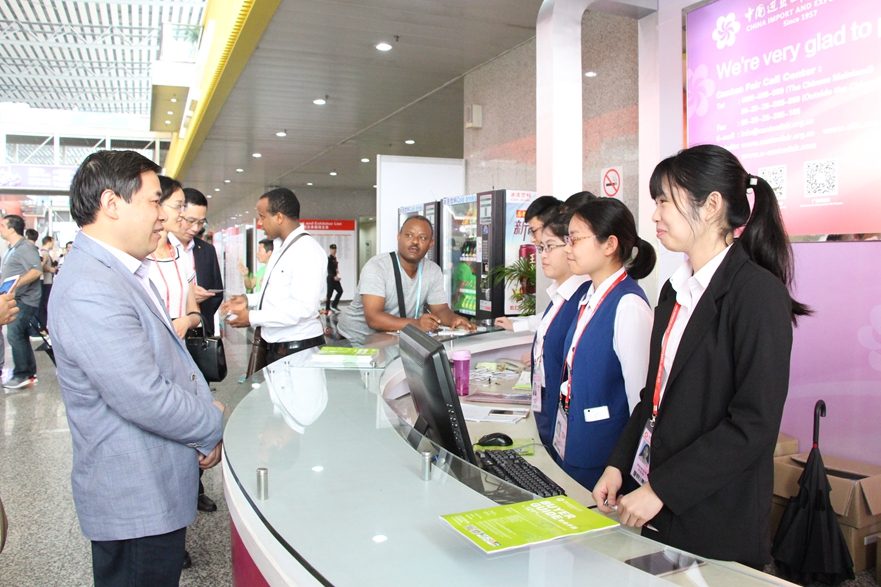 最后,焦方太一行先后来到国际联络部VIP接待处、客商咨询服务台、采购商办证中心等岗位进行参观。焦方太亲切询问了实习学生的工作情况,鼓励学生优质高效地完成工作,以专业的服务质量、国际化的服务水平展现出我校学子的风采。
