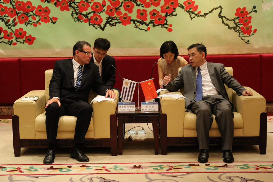 国际合作与交流处副处长吴俊峰、商学院副院长梁洁、西班牙语系主任张智志等参加会见。会谈结束后,汉尼拔•佩雷拉一行与我校西班牙语专业学生进行了座谈,就乌拉圭基本概况、传统文化、人才需求等问题进行了交流。