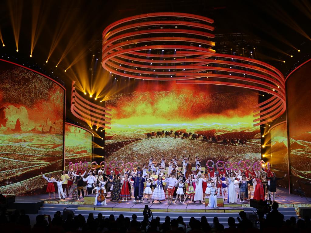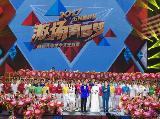 本网讯5月4日晚8点,2017年《五月的鲜花》全国大中学生文艺汇演于在中央电视台综合频道、综艺频道现场直播。此次汇演主题为“激扬青春梦”,由中宣部、教育部、共青团中央指导并承办的。来自全国79所大中学校近2000名学生汇聚央视一号演播大厅,用艺术的形式展现当代青年人的风采和活力。我校留学生参与开场演出,并表演大合唱《友谊地久天长》。