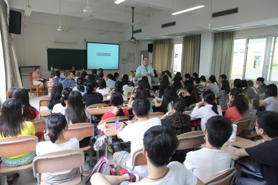2013年5月28日,南校区教学楼B208教室,一大早就被学生挤得满满。在这里新闻学院广告系的学生迎来了一堂别开生面的课,授课教师是来自美国西弗吉尼亚大学教授James Ebel,他把一门极富创造性的课程——《整合营销传播学课程(Integrated Marketing Communications,IMC)》带进广外课堂。 James重点向学生教授如何培养创造力和突破性思维,并组织由中国学生和外国学生混合组成的小组,到电脑城开展田野调查。 James别具一格的授课方式和课设计让广外学子留下了深刻印象,广告班蔡同学课后表示:“James的课启发自己更多需要与组员通过讨论、实践、实地考察去了解市场。”
