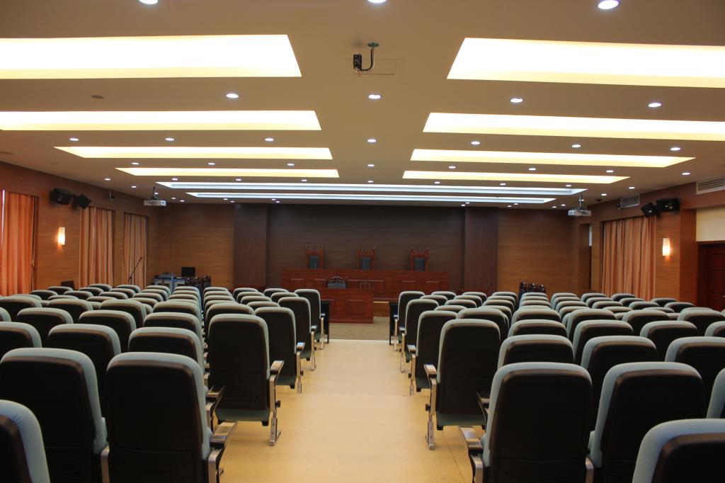 我校模拟法庭坐落在实验楼B座,分为大模拟法庭和小模拟法庭,模拟法庭真实还原了正式法庭庄严肃穆的环境与氛围。作为法学院的专业实验室,大模拟法庭配备了多媒体系统和扩声系统,以及自动录播系统,可用于课堂教学、专业比赛、模拟刑事审判以及一些中型学术讲座等。而小模拟法庭可用于模拟民事审判和小型学术报告,成为学生学习程序法等课程的主要场所。在投入使用后,它不仅承办了法学院辩论赛,法眼看世界等学术比赛,而且也经常举办一些其他学院或校级的学术活动。