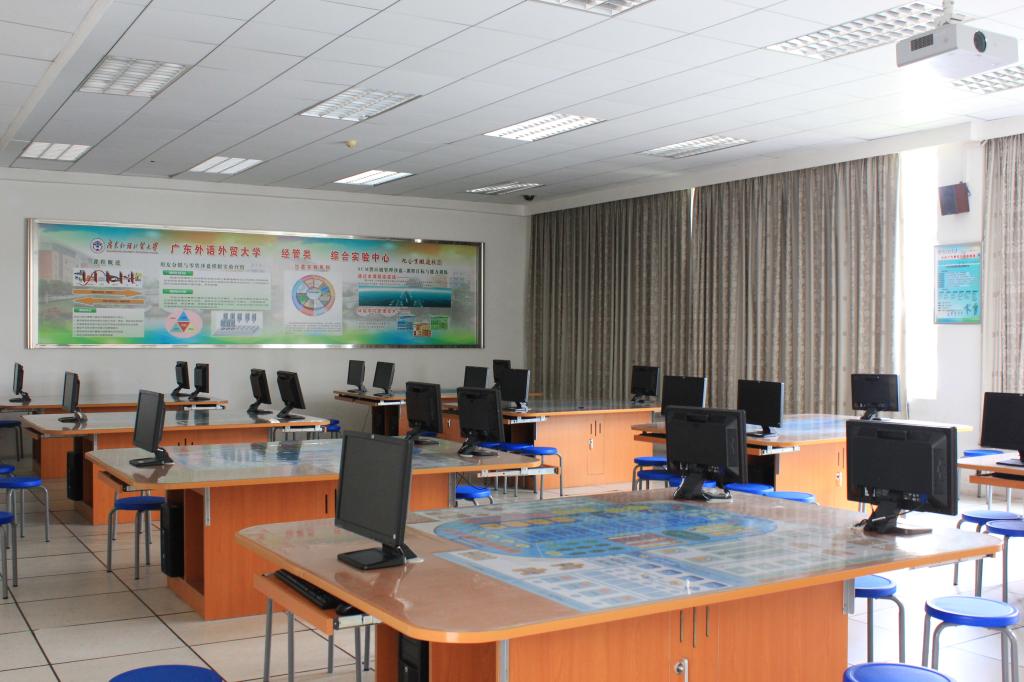 4间实验室位于在实验楼B区三、四楼,每间室有24个机位,可容纳72人。可进行企业行为模拟系列实验,包括“ERP沙盘实验”、“供应链管理沙盘实验”“人力资源管理沙盘实验”“策略销售沙盘实验”等。