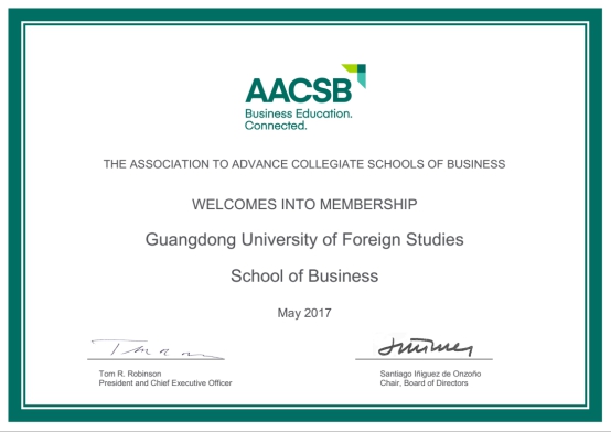 国际精英商学院协会(AACSB)会员证书