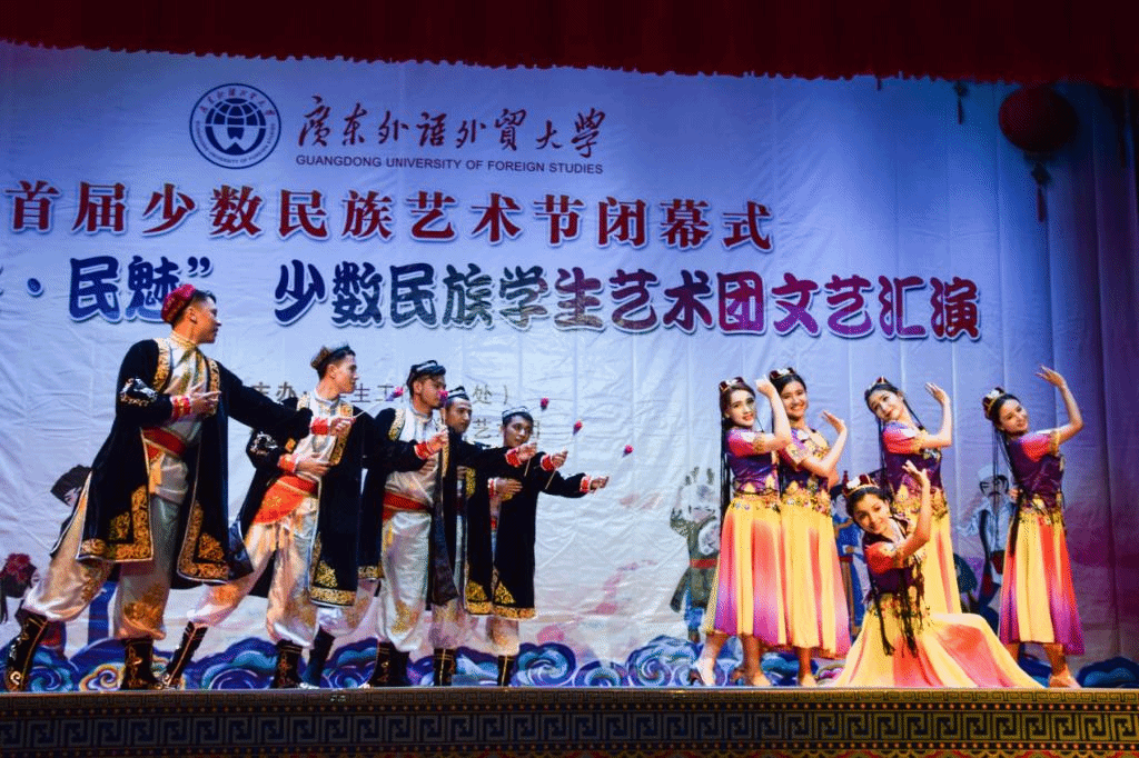 广东省教育厅思政处老师艾尼瓦尔在致辞中寄语我校少数民族学生艺术团继续在促进各民族同学交流融合方面发挥重要作用,祝愿少数民族学生艺术团越办越好。学生工作处副处长刘军受学校领导委托,对我校首届少数民族艺术节的圆满举办表示祝贺,希望艺术团的同学们继续追求卓越,打造特色品牌,自觉做民族团结的建设者、参与者和守护者。