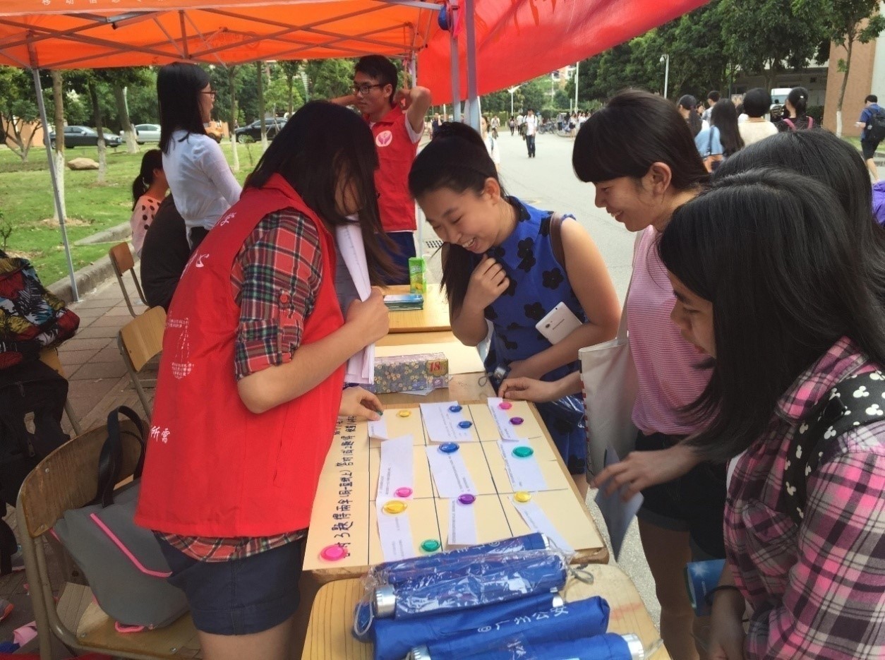 自2014年9月以来,法援中心开展了以“点灯计划”为名的定点法律援助活动,主动联系校外基层社区组织,通过每一次对其定点法律援助,像点灯一样点亮一个个基层社区或组织,使该区的居民获得优质的法律援助。活动开展以来,与广州越秀区社区矫正教育帮扶中心、番禺区大龙街家庭综合服务中心、天河区枫叶居委会、白云区均禾家庭综合服务中心等10余个基层组织签订定点法律援助合作协议,共举行了50余次普法讲座、普法摆摊或矫正授课,同时通过当面解答或微博微信值班接收了居民的法律咨询。
