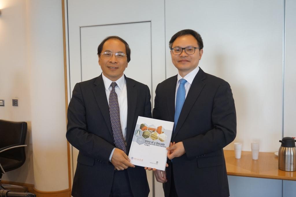 刘建达向余海岁赠送MA TESOL项目10周年纪念册