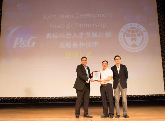 随后,宝洁2017年校园招聘宣讲会广外专场在大会堂举行,宣讲会现场Sumeet向刘海春赠送“战略合作伙伴”牌匾。