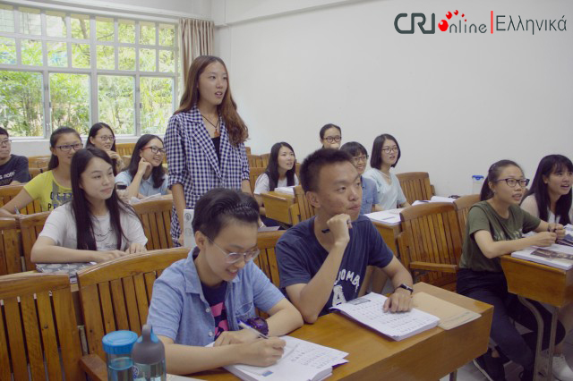 中国国际广播电台记者采访我校希腊语大一新生。学生们在第一节课上学习了希腊语字母,了解了希腊概况。课上还举行了一个小型的命名仪式,每位学生都选择了自己的希腊语名字。当同学们被问起为何选择希腊语作为自己的专业时,他们纷纷表达了自己对希腊悠久历史、多彩文化、优美景色的向往、爱慕和浓厚兴趣。