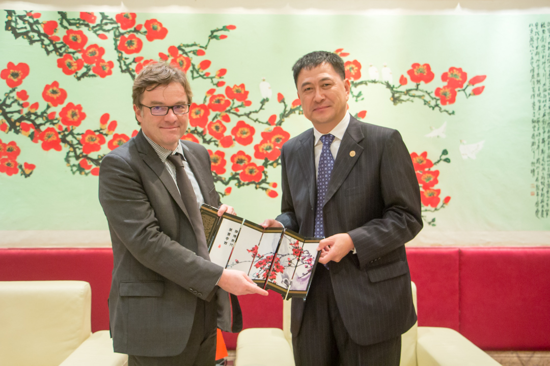 本网讯 10月28日下午,为加强与我校合作,特别是本硕连读项目和研究生双学位项目的合作,法国雷恩高等商学院校长阿普泰勒·奥利维尔一行来访。我校党委书记隋广军在行政楼贵宾厅会见来宾
