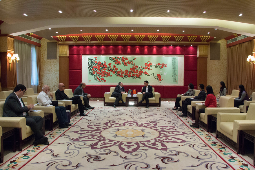仲伟合对巴西议员一行表示欢迎,并介绍了我校的历史和学科、教师队伍、对外交流等方面的建设情况。他说,我校与巴西圣保罗大学(University of Sao Paulo)、累西腓大学(Recife University)等高校建立了长期的合作交流关系,开展学生交换、教师交流等项目。仲伟合表示,未来我校将进一步加强与圣保罗大学等高校的合作,建立实质性的科研合作关系,在中巴关系、拉美及葡语国家研究等方面开展合作。克里斯托万·布阿尔克对我校的外语教育及中国语言文化都表现了极大兴趣,并表示期待中巴教育合作能有进一步发展。
