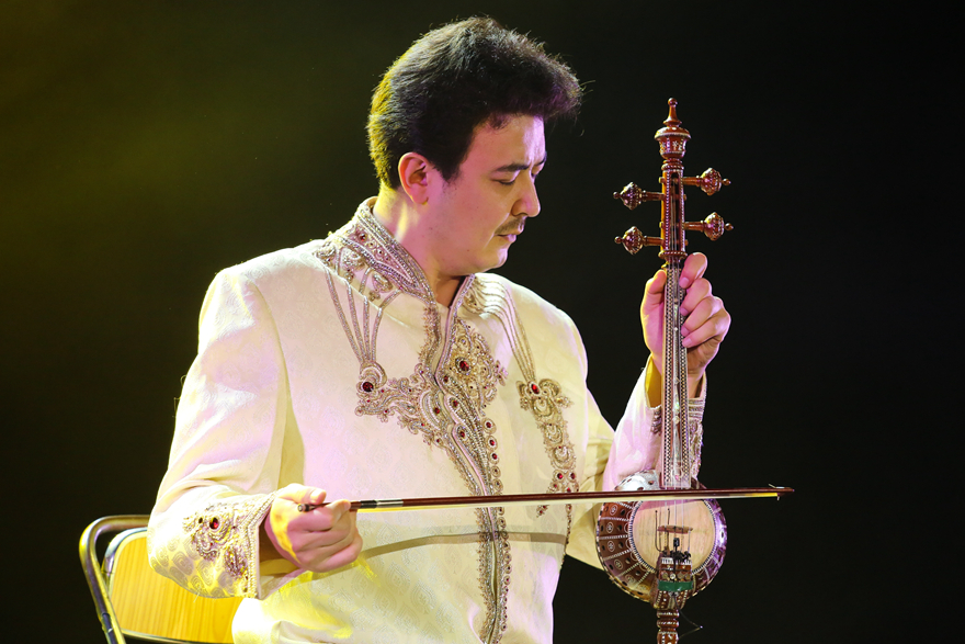雷滢带来的独弦琴演奏《红面纱》营造出空旷缥缈的意境,让观众深陷其中,据悉独弦琴已被纳入国家级非物质文化遗产,全国能够弹奏独弦琴的人不足21人;张铎带来的马头琴独奏《万马奔腾》气势磅礴,琴声中有着辽阔草原的深远;素有“亚洲鼓王”之称的维吾尔族青年乐手伊利亚尔带来的手鼓独奏,与台下观众积极互动,现场欢声不断,气氛热烈。