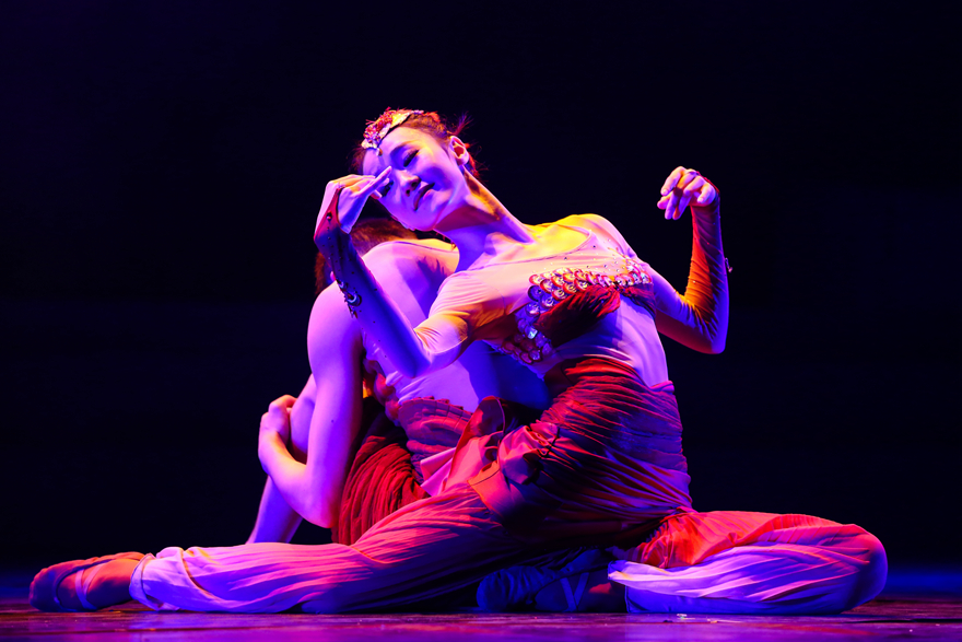 傣族双人舞蹈《双》诠释了一段唯美浪漫的爱情故事,通过展现相互爱慕的红金鱼在水中嬉戏打闹的场景,表达男女之间对美好爱情的向往,以及对自由生活的渴望。