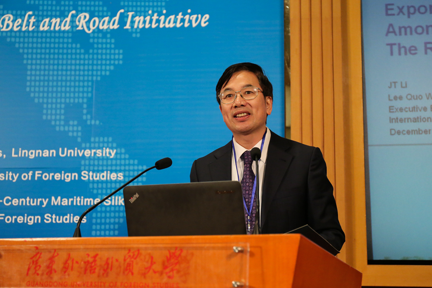 接着,国际商务学会东南亚分会主席崔耕致辞。他介绍,此次年会是十六年来第四次在中国举行,自2015年年会以来,分会管理人员从六人增加到九人,选拔及继任机制也在不断完善中。放眼全球,英国退欧、美国大选等一系列事件体现了部分国家人民对全球化的忧虑及孤立主义的观点,然而亚洲(尤其是东南亚)国家的联系与合作更加紧密,此次年会以“连接与繁荣:东盟经济共同体与中国'一带一路'”为主题,非常契合当前国际形势发展的需求。最后,他代表所有与会嘉宾向广东外语外贸大学(尤其是商学院会务组)、演讲嘉宾、论文评审等所有相关人员的努力付出表示衷心的感谢。