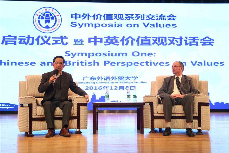 Stephen J. Rake 的主旨演讲围绕中英价值观比较展开。他用图表形式将中国社会主义核心价值观与英国主流价值观进行了对比,他认为,一方面,中英两国价值观在对富强、公正、法治和民主等的追求上具有一致性;另一方面,中英价值观不仅由于存在语言(包括语音语义)的天然障碍,因而给定义和理解两国价值观造成了困难。而且两国价值观的优先排序存在着差异,对价值观的解读也不尽相同,如“中国更侧重集体主义,爱国就意味着团结,忠于国家,而英国更侧重个人主义”。此外,宽容、多元、包容、融合也是英国主流价值观的特色。他强调,正确对待和处理中国的社会主义核心价值观与英国主流价值观的异同,在文化交流中既要保持文化敏感度,也要尊重各自的文化传统,对增进互信、促进中英两国之间双边关系发展,意义重大。