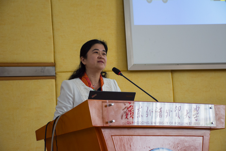 袁长青在致辞中指出,在当前传播技术力量的驱动下,新闻传播格局正发生着深刻深远的革命。袁长青还列举了一系列的新新技术,如机械写稿、AR、VR等。他说出了此次工作开班的目的所在,“通过增强综合的能力,来应对技术演进带来的挑战。”袁长青肯定了我校作为培养双商两强、具有国际视野人才基地的作用,“就人才培养的问题上,工作坊有助于推进专业教学和外语教学的深度融合,培养双高、两强、有社会责任感的国际化人才”。