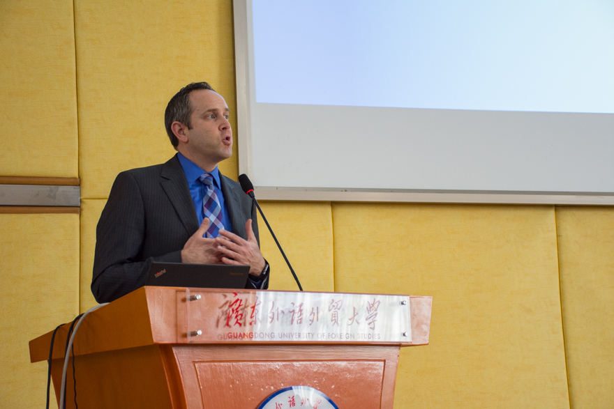本网讯 为更好适应媒介变革,发展媒体融合与数据新闻的方向,12月12日上午,广外—密苏里大学联合举办的媒体融合与数据新闻工作坊开幕式在南校区八角楼举行。密苏里大学新闻学院未来实验室副主任Reuben Stern、本次教学周项目负责人章于炎博士、我校教务处处长袁长青、新闻与传播学院院长杨魁等校内外领导教师出席。开幕式由新闻与传播学院党委书记黄秀娟主持。263位来自全国各地的同学与业界同行以及我校本科生、研究生参加工作坊。