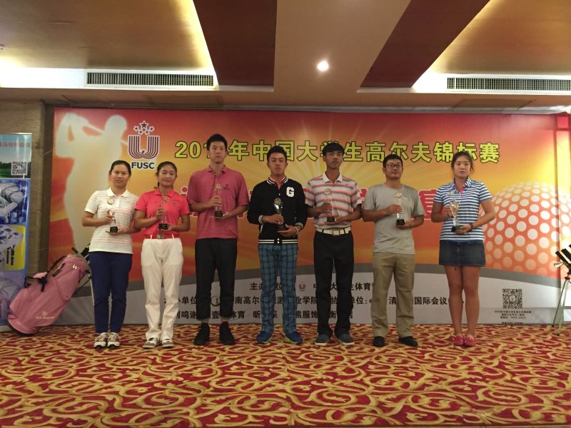 本次比赛,我校高尔夫球队派出佘梓瀚、罗子鹏、王欣和李子优四名队员,由林少娜及王鲁江老师作为领队和教练员带队参赛。其中,我校首次派出罗子鹏、李子优两位非专业组的队员参赛,他们自去年10月入队,克服了场地、器材及时间等多方面条件的困难,在教练员的悉心指导下刻苦训练,最终获得代表学校参加此次全国比赛的机会。在本次全国赛中,我校代表队取得优异成绩,商英学院15级新生佘梓瀚同学以出色的表现勇夺超级组男子个人第一名,英文学院王欣同学获得超级组女子个人第二名,法学院李子优同学获得非专业组女子个人第八名。