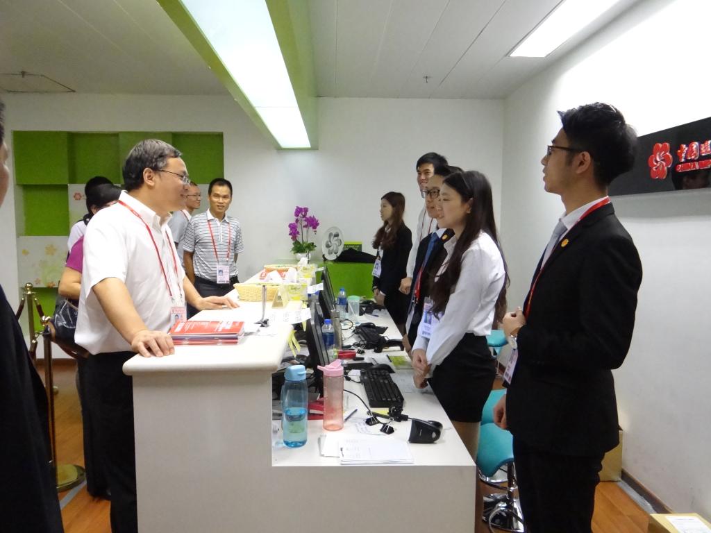 随后,刘建达一行在广交会保卫部科长陈少伟的陪同下,先后到达VIP休息室、客商咨询服务台、境外采购商办证中心等工作岗位参观,亲切慰问在基层工作的实习生,在询问实习生工作情况,鼓励他们以专业素质高效完成工作任务,展现广外学子精神风采。