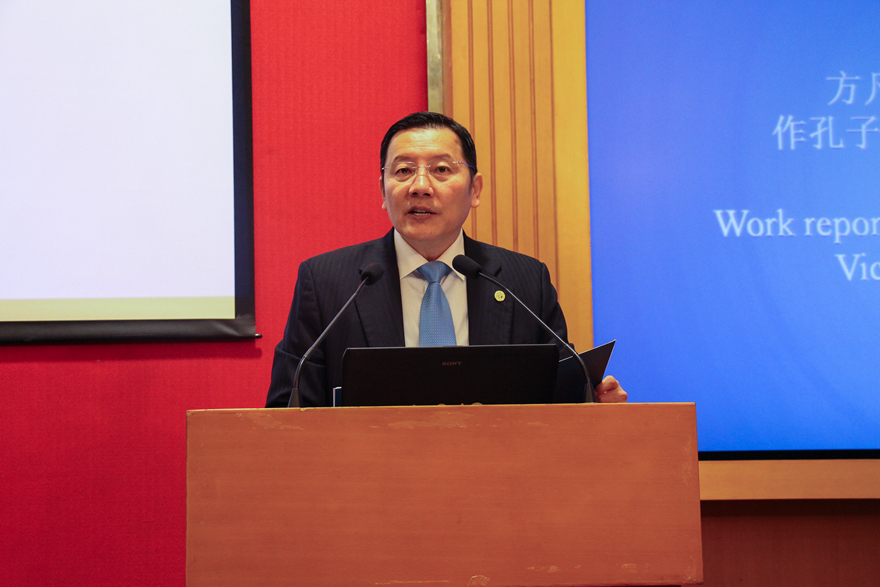 方凡泉作孔子学院工作报告。他从基本情况,工作经验,中外合作以及思路与规划四个方面做了详尽报告。他提出,在多方机构的努力下我校孔子学院工作不断取得进步。在教育上,加强汉语教学,扩大招生规模,加强学分学历课程合作;在组织上,健全组织机构,保障外派人员,加强孔院奖学金管理;在教师队伍上,加强师资培训,制定专业汉语教师派遣计划;在其他方面,积极举行文化活动,扩大文化传播,加强志愿者培训等等。这些丰硕成果的取得,离不开国家汉办以及孔子学院总部和中外双方的大力支持,他承诺,今后我校会进一步加强孔子学院的规划和管理,把孔子学院工作推上新的台阶,为深化中外文化交流做出积极地贡献。