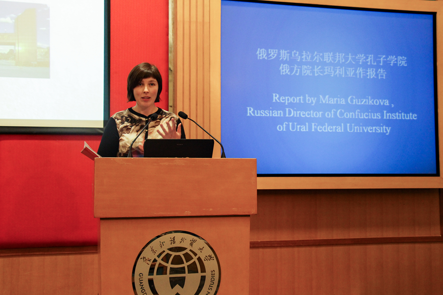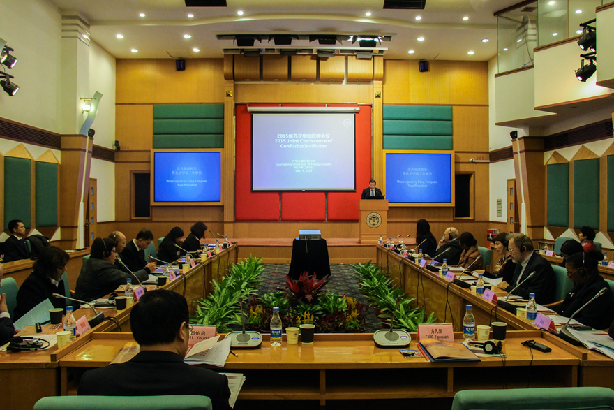 本网讯 12月9日下午,孔子学院联席会议在我校行政楼国际会议厅举行。自2006年来,我校陆续和日本札幌大学、俄罗斯乌拉尔联邦大学、秘鲁圣玛利亚天主教大学、佛得角大学合作建设了四家孔子学院。当天四家孔院的代表齐聚广外共商孔院发展大计。
