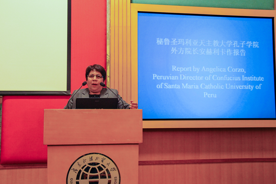 安赫丽卡用精美的视频加演说展示了秘鲁圣玛利亚天主教大学孔子学院的建设情况,他们在开展课程教育的同时,不忘举办具有中国特色的各色文化活动,这些文化活动不仅受学生欢迎,媒体关注,更是促进了中国文化的传播,加强了两地文化的交流。作为秘鲁圣玛利亚天主教大学孔子学院的中方院长,彭启贵表示,现在在孔院的14名来自我校的教师和志愿者专业化程度很高,非常受当地学校支持。佛得角大学孔子学院作为与我校建立的最年轻的孔子学院,成立于今年7月,胡迪特表示她相信在校方和佛方的而共同努力下一定会得到很好的发展。