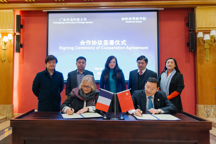 本网讯 3月17日上午,法国南特高等商学院教育集团对外事务办公室主任迪西·施密特、中国区发展主任石东辉一行来访我校,与我校签订合作协议。我校副校长方凡泉在行政楼贵宾厅会见了来宾。国际合作与交流处处长蔡红、商学院执行院长朱文忠、副院长梁洁、法语系主任叶剑如等陪同会见。