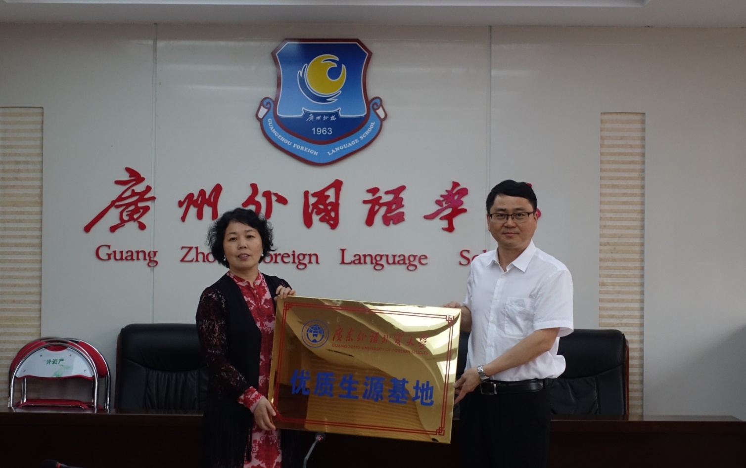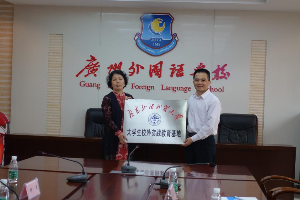 本网讯 4月12日,我校与广州外国语学校签约共建优质生源基地和大学生校外实践教育基地。广州外国语学校校长刘红梅、书记刘长喜、校长助理刘峰和我校教务处长兼招生办主任袁长青、英语教育学院党委书记林绍雄等出席了签约和授牌仪式。