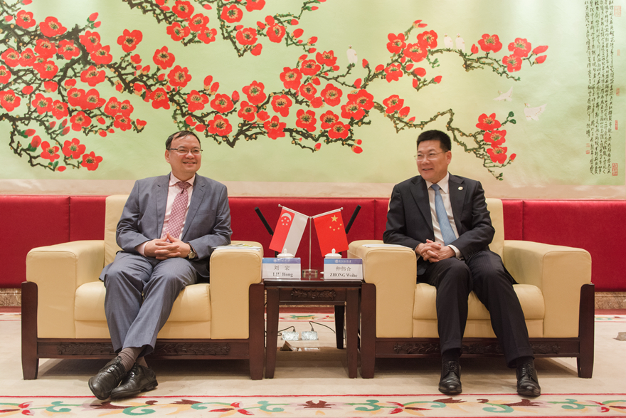 广外新闻网讯 4月22日上午,南洋理工大学公共管理研究生院院长刘宏、高级培训项目主任王航等一行来访我校洽谈合作。我校校长仲伟合于北校行政楼贵宾厅会见了来宾,国际处处长蔡红、法学院院长胡充寒等参加了会见。