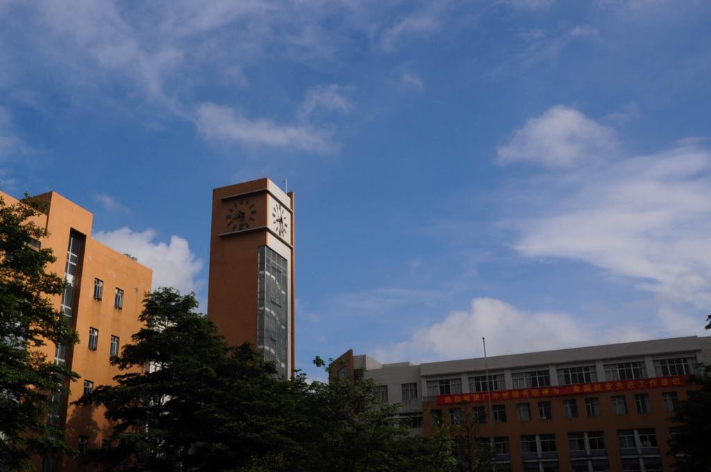 如果说相思河为广外北校平添了几分柔美与诗意,那么巍峨的钟楼则为广外南校增加了几分阳刚与厚实。钟楼如同一位睿智的长者,在深邃的时间里,记录着一幕又一幕的感人故事,一个又一个的成长脚步,一批又一批的青春记忆,一年又一年的广外新颜。