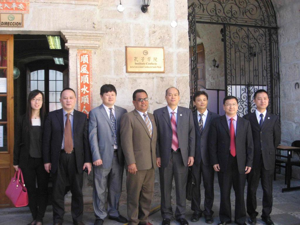 5月22日,卢景辉一行访问了位于秘鲁第二大城市阿雷基帕的圣玛利亚天主教大学。卢景辉与该校校长阿贝尔·费南德斯(Abel Andres Tapia Fernandez)等进行了工作会谈,观看了孔子学院介绍片,听取了圣玛利亚天主教大学孔子学院外方院长德尔文及中方院长易宗勇做的工作报告。一年来孔子学院在增加教学点、扩大招收规模、拓展文化活动、提高社会影响力等方面取得了令人瞩目的成果。阿贝尔·费南德斯感谢广外一直以来的支持,表示两校虽然相隔万里,但传播中国语言文化的共同事业拉近了两校的距离。卢景辉感谢秘方的支持及对我校师生的关照,对孔子学院取得的成就表示祝贺,希望进一步扩大合作与交流,共同促进孔子学院事业的发展。卢景辉代表学校邀请阿贝尔·费南德斯再次访问我校,并出席我校的50周年校庆活动。