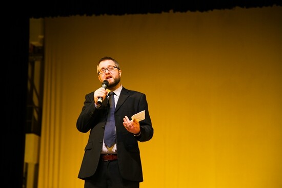 英文学院外教Duncan Lees在点评中指出,这一次戏剧大赛为我们展示了华丽的莎士比亚语言,很好解释了莎翁作品在450年后仍被世人所演绎称赞的原因。他对本次比赛中的戏剧改编和表演给予了高度的评价。他表示,在这次比赛之前,如果有人告诉他能够有人能够用第二甚至第三语言在舞台上做出这样长时间的戏剧表演,他的回答一定是“It’s Joking.(开玩笑)”。但当晚的比赛中,英文学院的学生们却做到了,这样他感到非常的不可思议和高兴。他还提到,由于学校男生数量少,要演好莎翁那个男人主宰的时代的戏剧是有难度的,但是英文学院的学生都很好地克服这一难题。而在解决难题的同时,他发现同学们又给自己剧本增添了难度,如:把《麦克白》改编成中国版本;把长著作《奥赛罗》压缩成25分钟的一部戏剧等等。最后Duncan Lees表示,这一次的大赛不是为了奖项,而是希望在场所有人能在这一次致敬莎翁的戏剧大赛中有所收获,因为 “Shakespearean is not for an age but for all time.”。