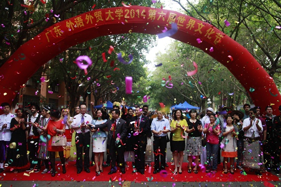 广外新闻网讯“古龙水与美食香味并存”的主校道,热跳“小苹果”的云山会堂,2014年第六届世界文化节上人流涌动,气氛热烈。世界文化节作为我校“校园十大精品活动”之一,分为“世界文化系列讲座”、“世界美食长廊”和“世界文化节晚会”三大环节,历经六届,已成为我校中外学生一年一度的文化盛会。