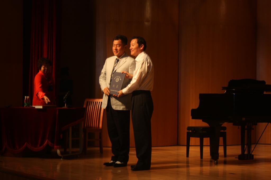 广外新闻网讯 11月6日下午,一场别开生面的声乐大师班讲座在艺术学院小剧场拉开帷幕,星海音乐学院声乐系主任、硕士生导师、著名男高音歌唱家杨岩受邀担任主讲嘉宾。我校副校长方凡泉,艺术学院院长李于昆、党总支书记朱珍葶,副院长罗金燕、副书记林烈群及艺术学院众多师生参加了此次活动。讲座开始前,方凡泉代表学校向杨岩颁发客座教授的荣誉证书。