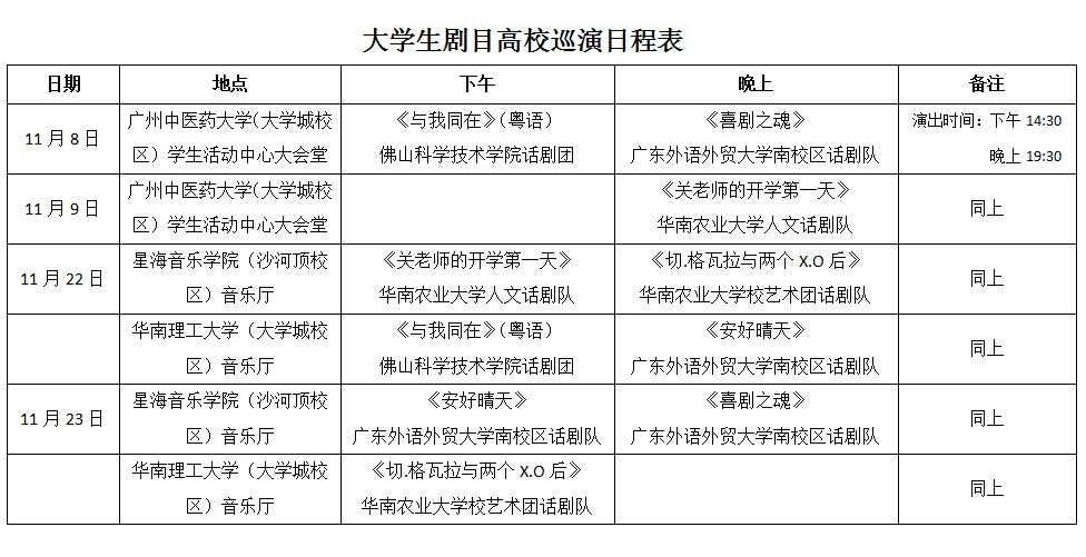 附:大学生剧目高校巡演日程表