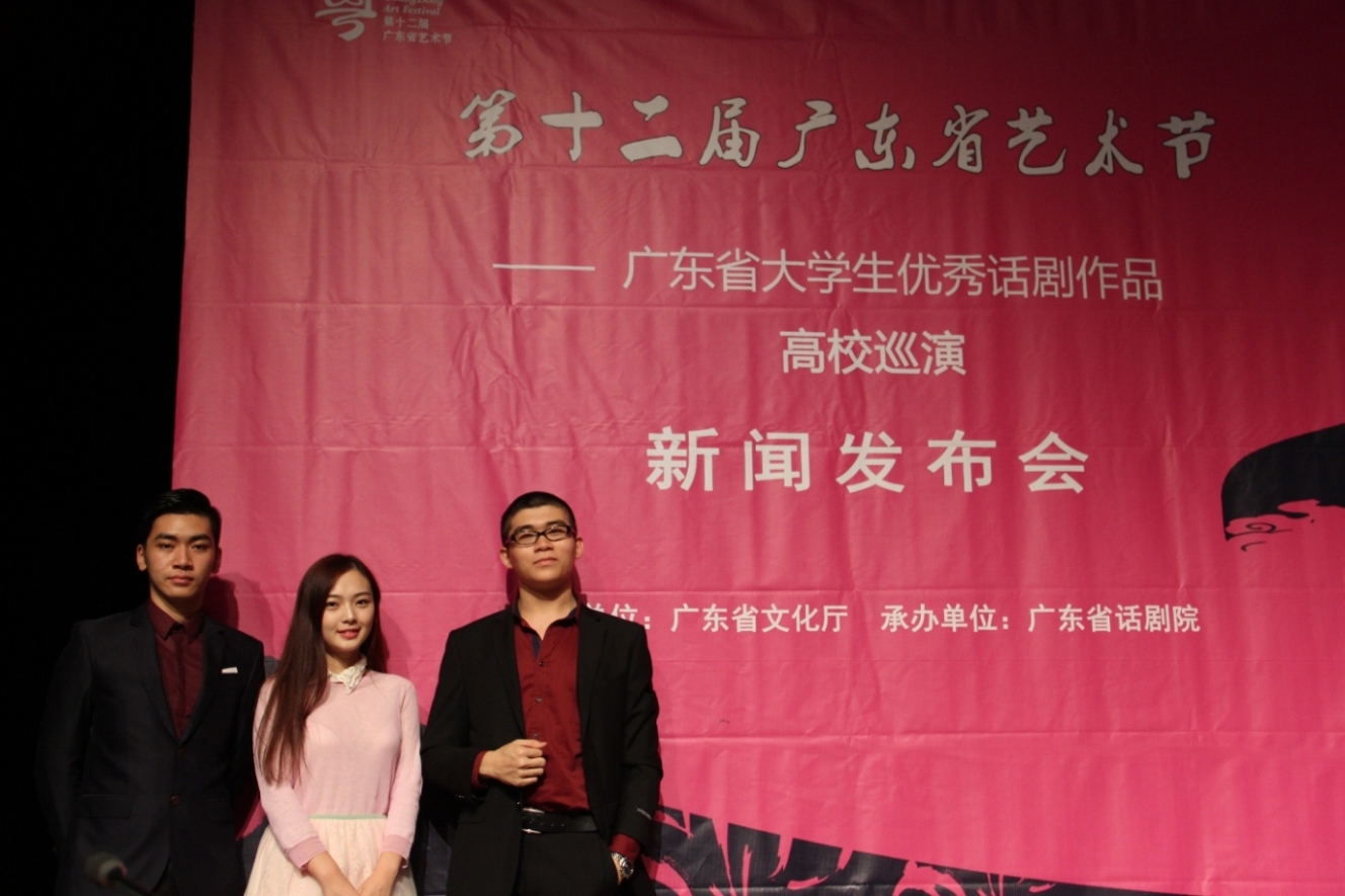 广外新闻网讯 11月6日,“戏剧燃亮青春——第十二届广东省艺术节暨广东省大学生优秀话剧作品高校巡演”新闻发布会在省话剧院召开。从3月份报名到10月中旬完成两轮展演,并经过专家们评审后,共有五部作品从众多参选剧目中脱颖而出,其中我校艺术团南校话剧队的《喜剧之魂》和《安好晴天》均在其列。