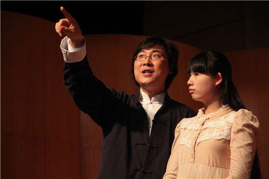 他还说,唱歌的时候一定要放松,只有在放松的状态下才能真正唱出歌来。为了让献唱的学生放松下来,廖昌永主动牵着他们在舞台上走动。“人在洗澡时是最放松的,所以唱歌时也最陶醉”,廖昌永话音未落,整个剧场都爆发出阵阵笑声。